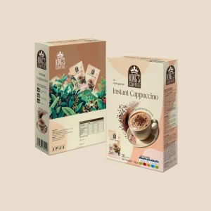 Instant cappuccino powder with soluble coffee, coffee whitener, and sugar. Store in a cool, dry place
